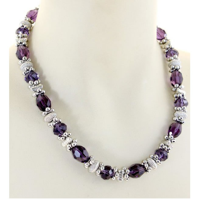 Damen Halskette in Silber mit violetten hangeschliffenen Kristallen
