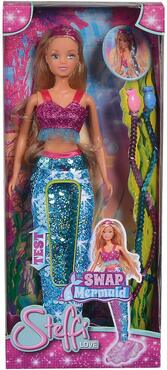Steffi Love Swap Mermaid Simba, Steffi als Meerjungfrau mit toller Paillettenschwanz Flosse und Swap-Effekt, inkl. zwei Haarsträhnen, 29cm