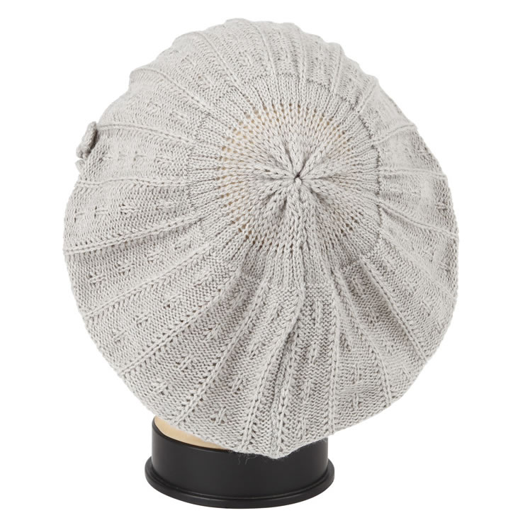 Strickmütze für Sie in hellgrau mit modischen Blumen Applikation