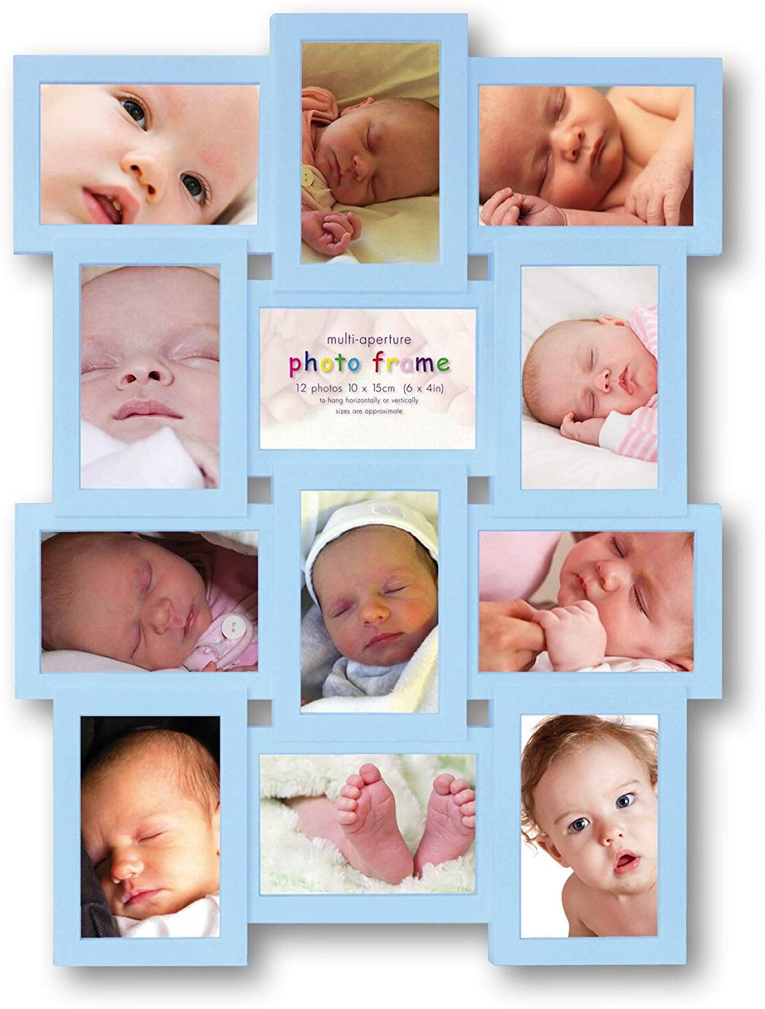 Kinder Fotogalerie blau Kunststoff-Bilderrahmen zum Hinhängen zwölf "zusammengesetzte" Einzelrahmen als Galerierahmen für zwölf Bilder im Format 10x15 cm Format: 44,5x58,5 cm